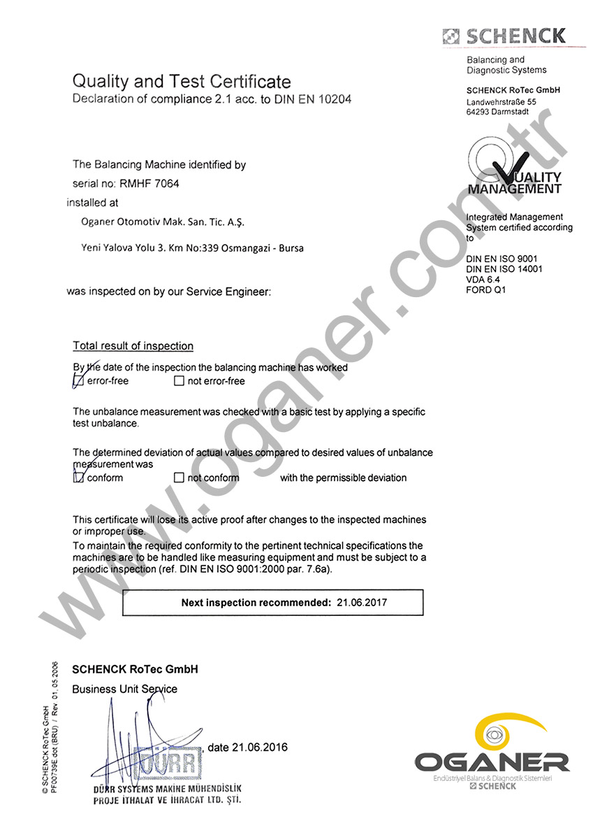 Schenck Endüstriyel Sanayi Balansı Hizmetleri