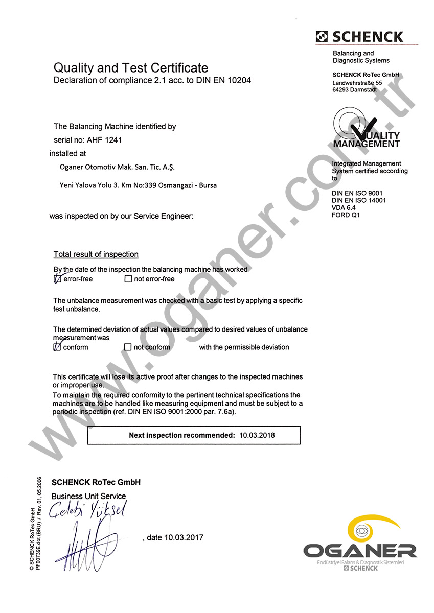 Schenck Endüstriyel Sanayi Balansı Hizmetleri