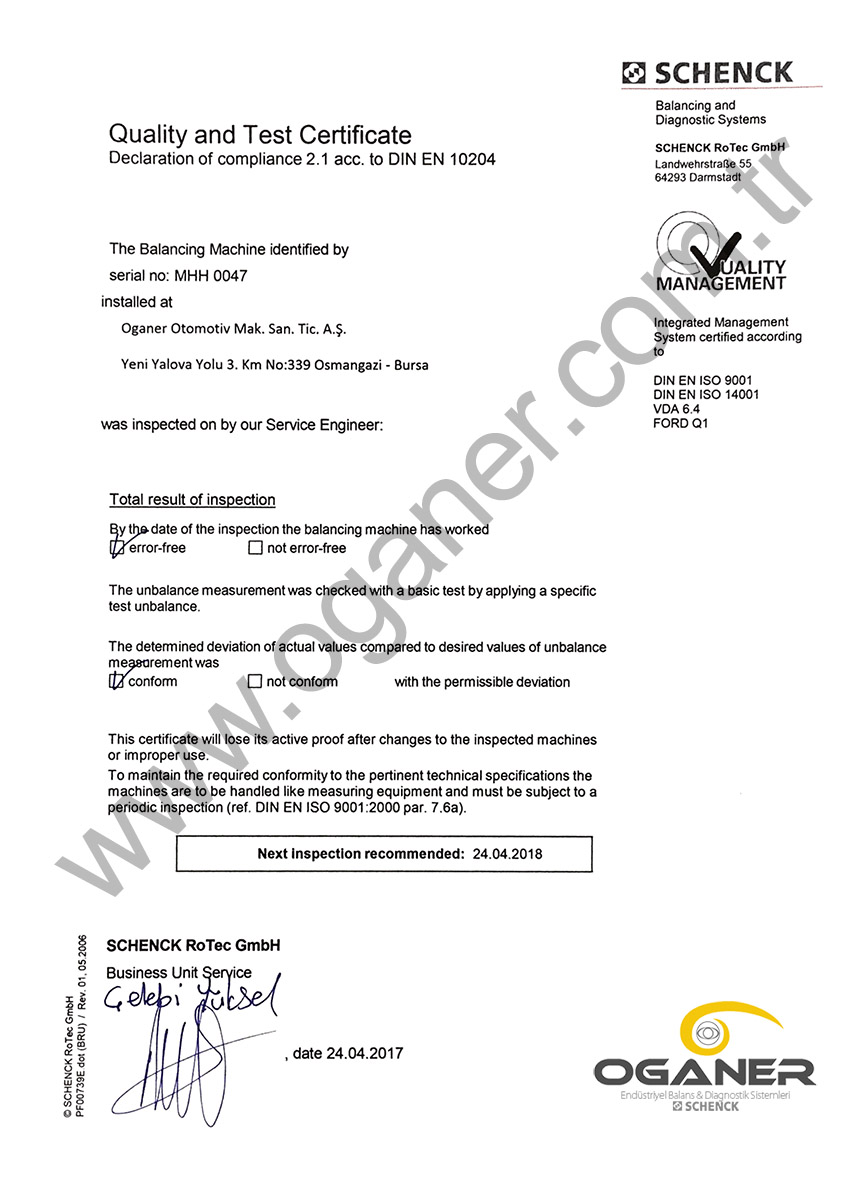 Schenck Endüstriyel Sanayi Balansı Hizmetleri